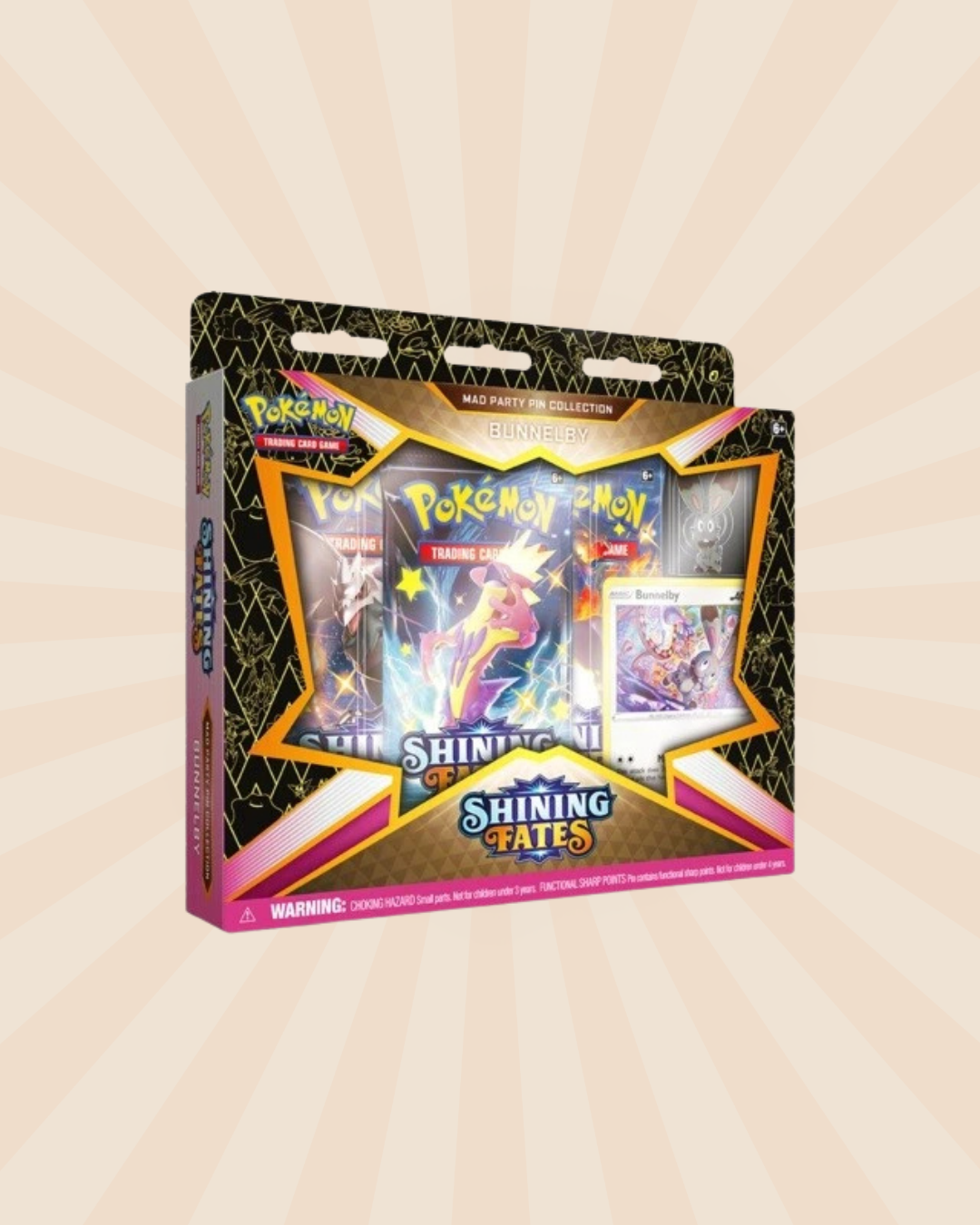✨ Met de Shining Fates Mad Party Pin Collection Bunnelby vier je het jubileum van Pokémon op feestelijke wijze en vergroot je je kansen op spectaculaire pulls.