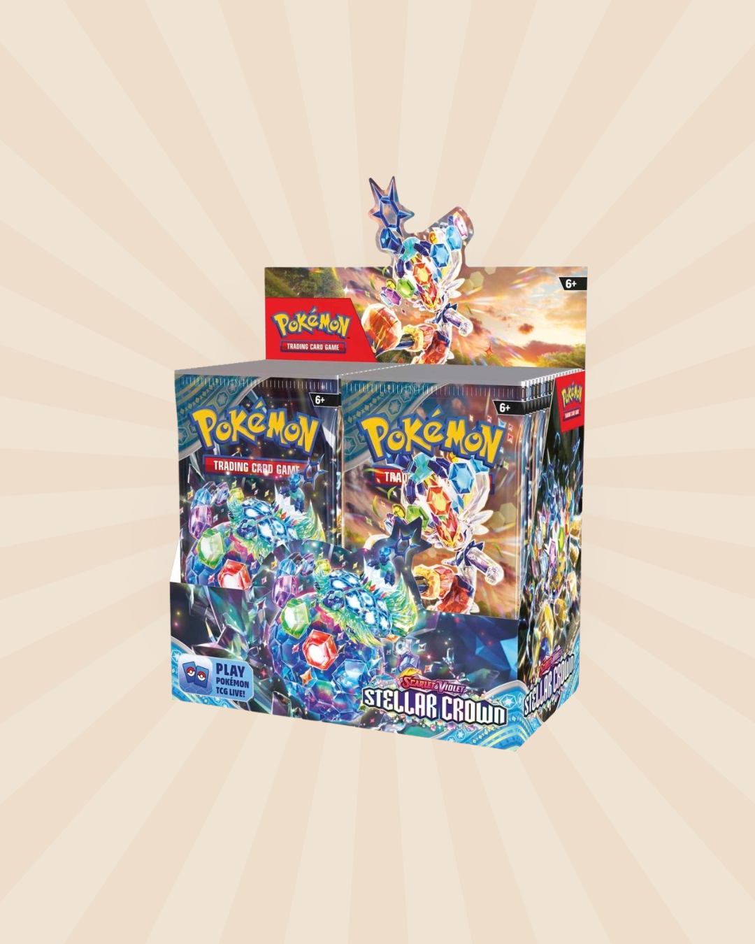 De mysterieuze Hydrapple ex sluit zich aan bij de strijd en nieuwe ACE SPEC-kaarten zorgen voor extra spanning en strategie. In de Scarlet & Violet Stellar Crown-uitbreiding wacht achter elk pack een verrassing, vol kracht en glans.